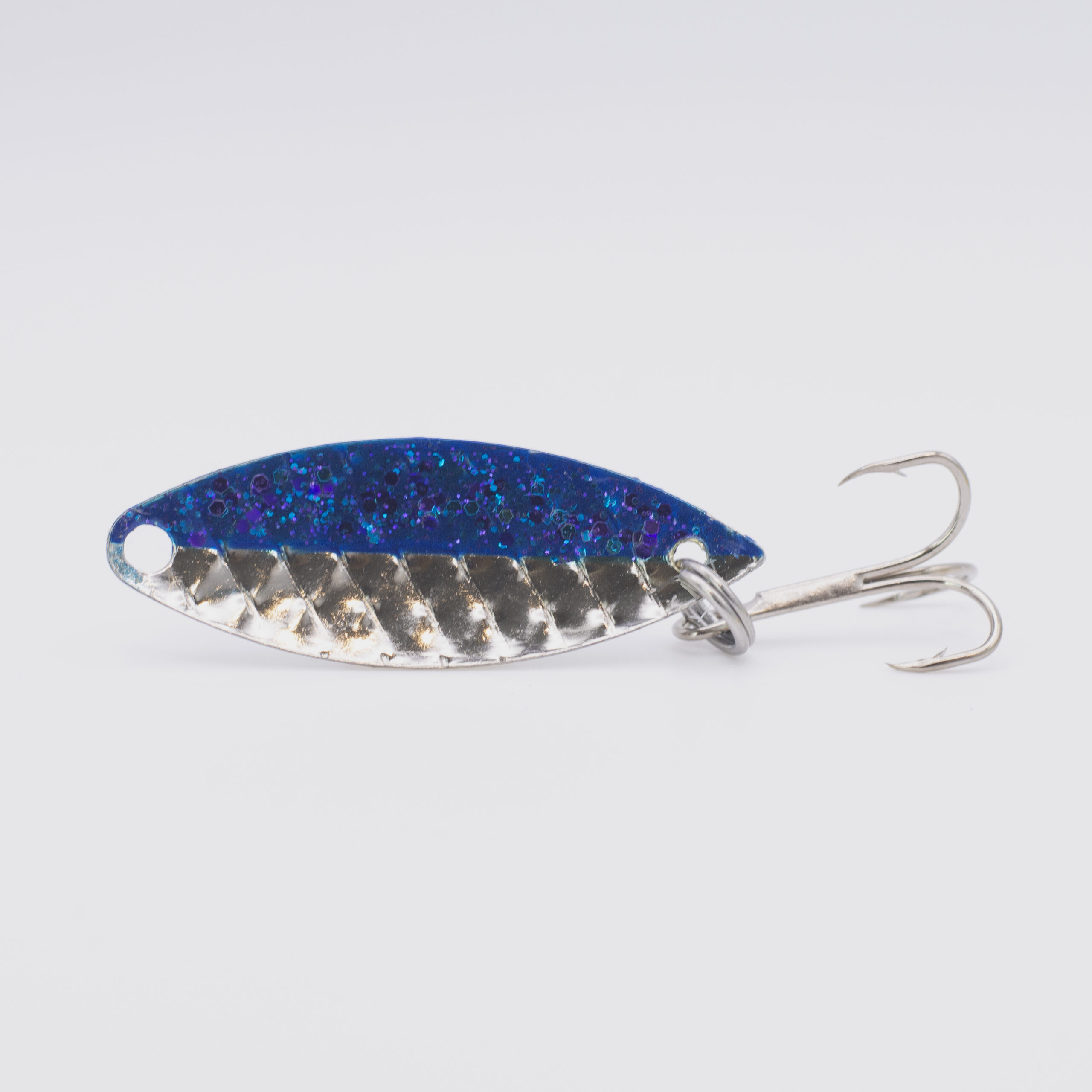 Excalibur UV — Hand-painted & Handmade in the USA A true workhorse with royal pedigree. The Excalibur UV is a half-silver, half-blue spoon lure, hand-painted for maximum flash and contrast. Designed to perform from 1 to 150 feet deep, it’s built to catch fish every day of the year—whether you’re trolling alpine lakes or chasing stripers in open water.