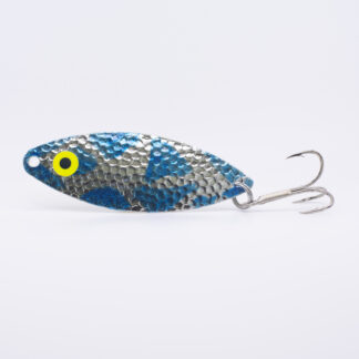 -Built for explosive action in deep water, the Kokanee UV is a spoon-shaped lure with a flashy blue back, and a silver belly that mimics the shimmer of baitfish. Its tight wobble and high-contrast finish make it a deadly choice for lake trout on the hunt.