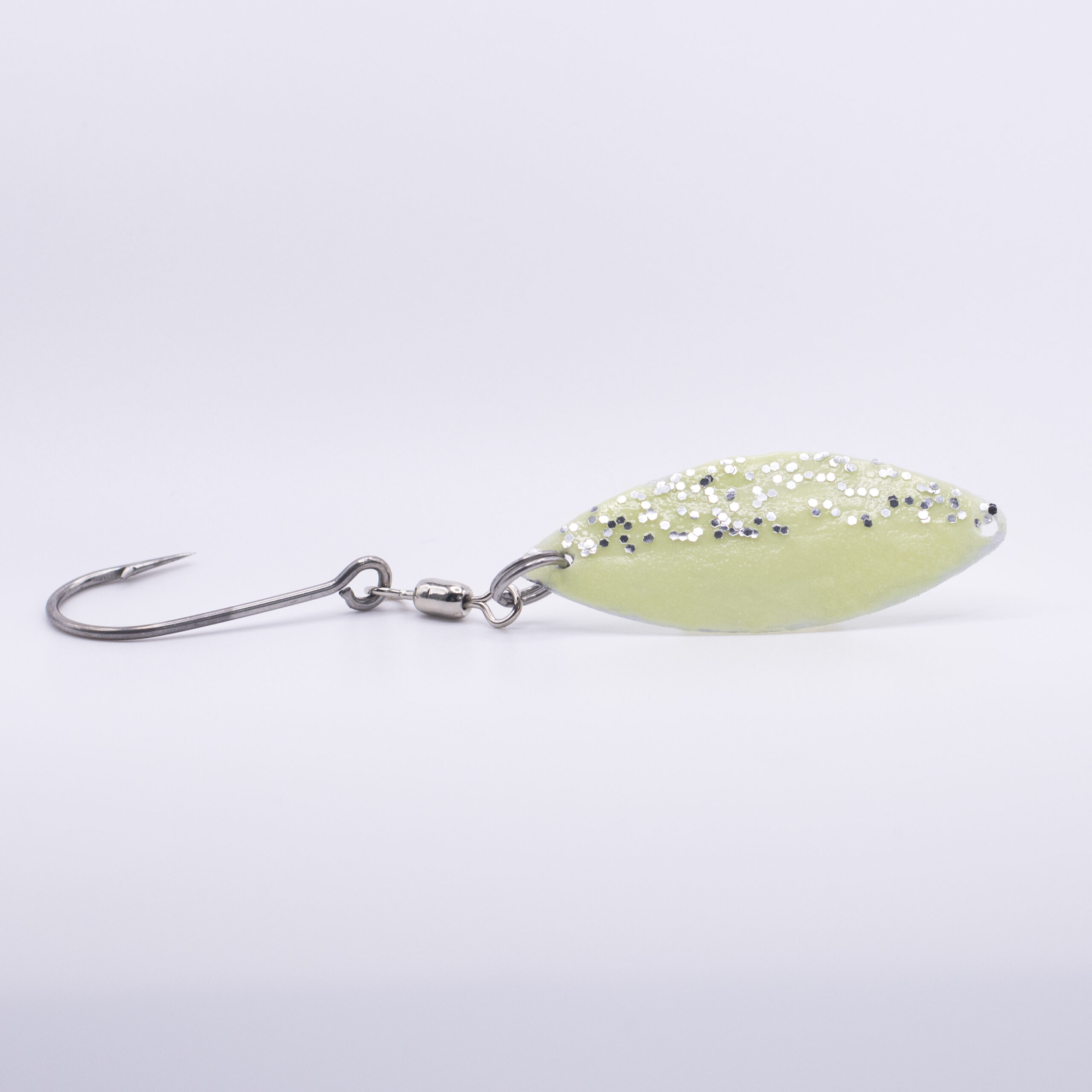 | Small | 4.25″ × 0.75″ | Swivel + Salmon Hook |