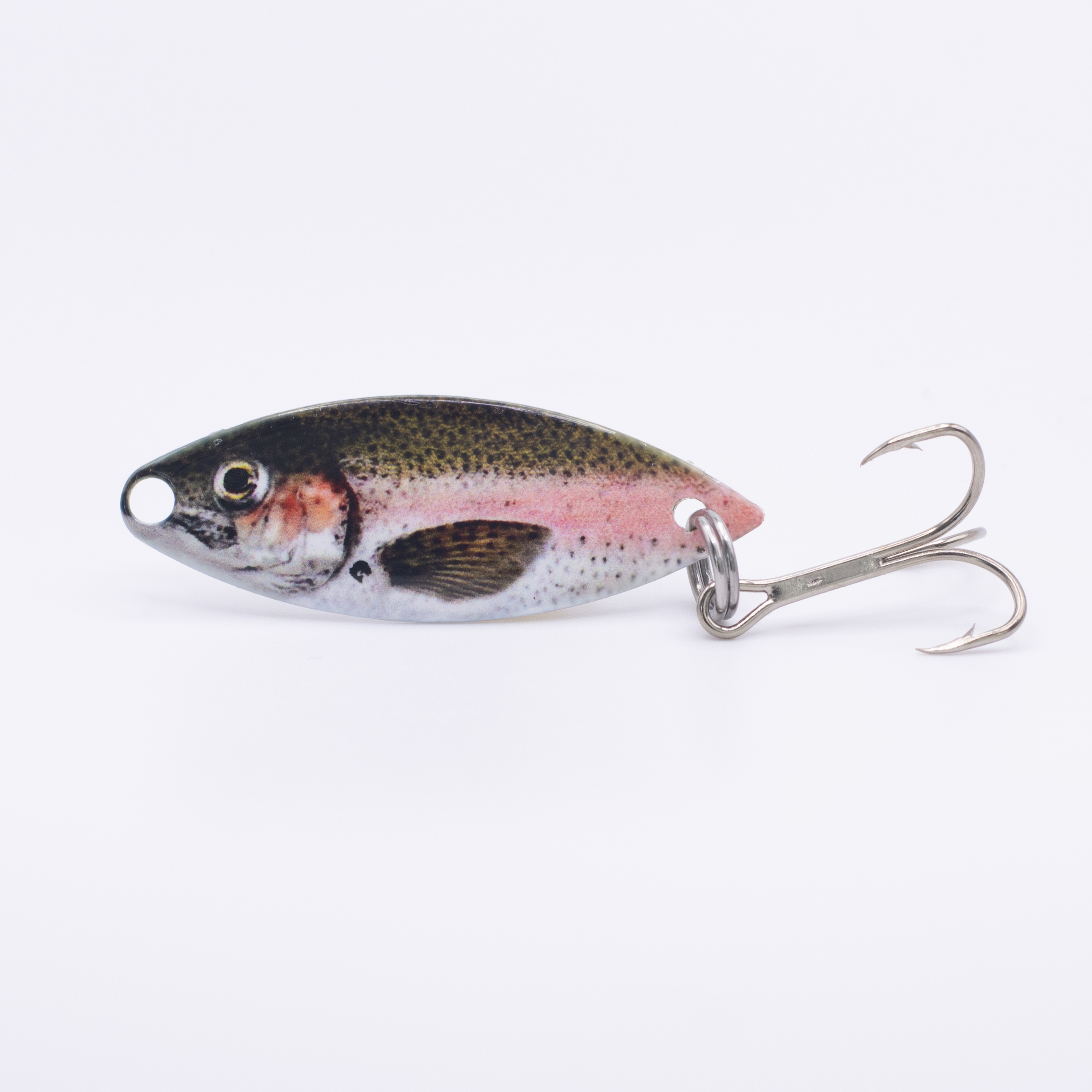 Realistic rainbow trout painted spoon lure with a UV top coat.